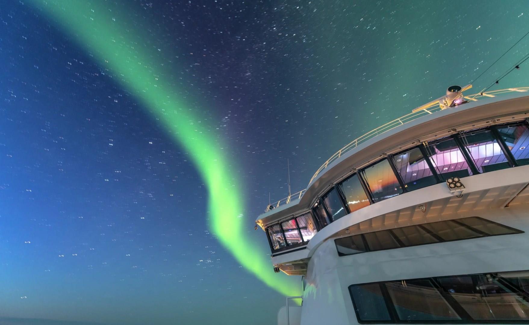 The stunning scenery is reflected in a rich and comfortable interior design. Scandinavian materials from nature, such as granite, oak, birch and wool are used to create relaxed and stylish cabins and public areas. All cabins are outside cabins, of which 50% have private balconies, and aft suites feature private outdoor hot tubs with spectacular views.